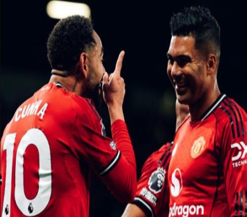 雷速体育10月26报道 英超第9轮,曼联主场迎战布莱顿。在上半时的比赛里,卡塞米罗传射,库尼亚破门,助红魔在上半时取得2-0的优势。