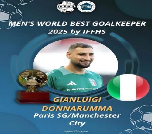 北京时间12月27日,国际足球历史和统计联合会(IFFHS)官方宣布,意大利国门、目前效力于曼城的多纳鲁马当选由他们评出的2025年世界男足最佳门将。